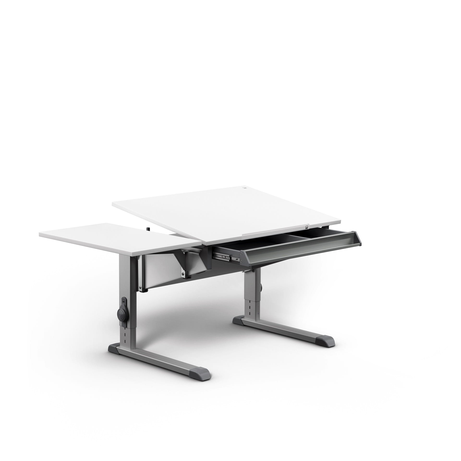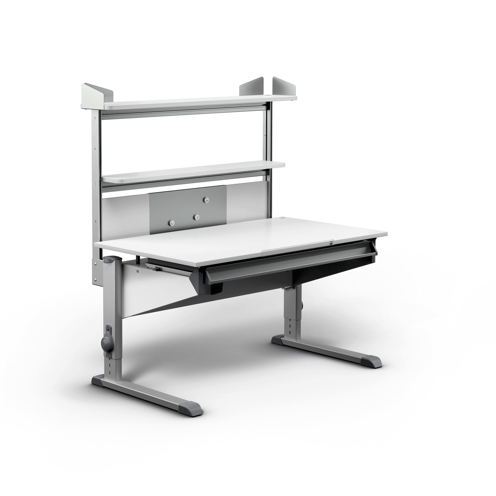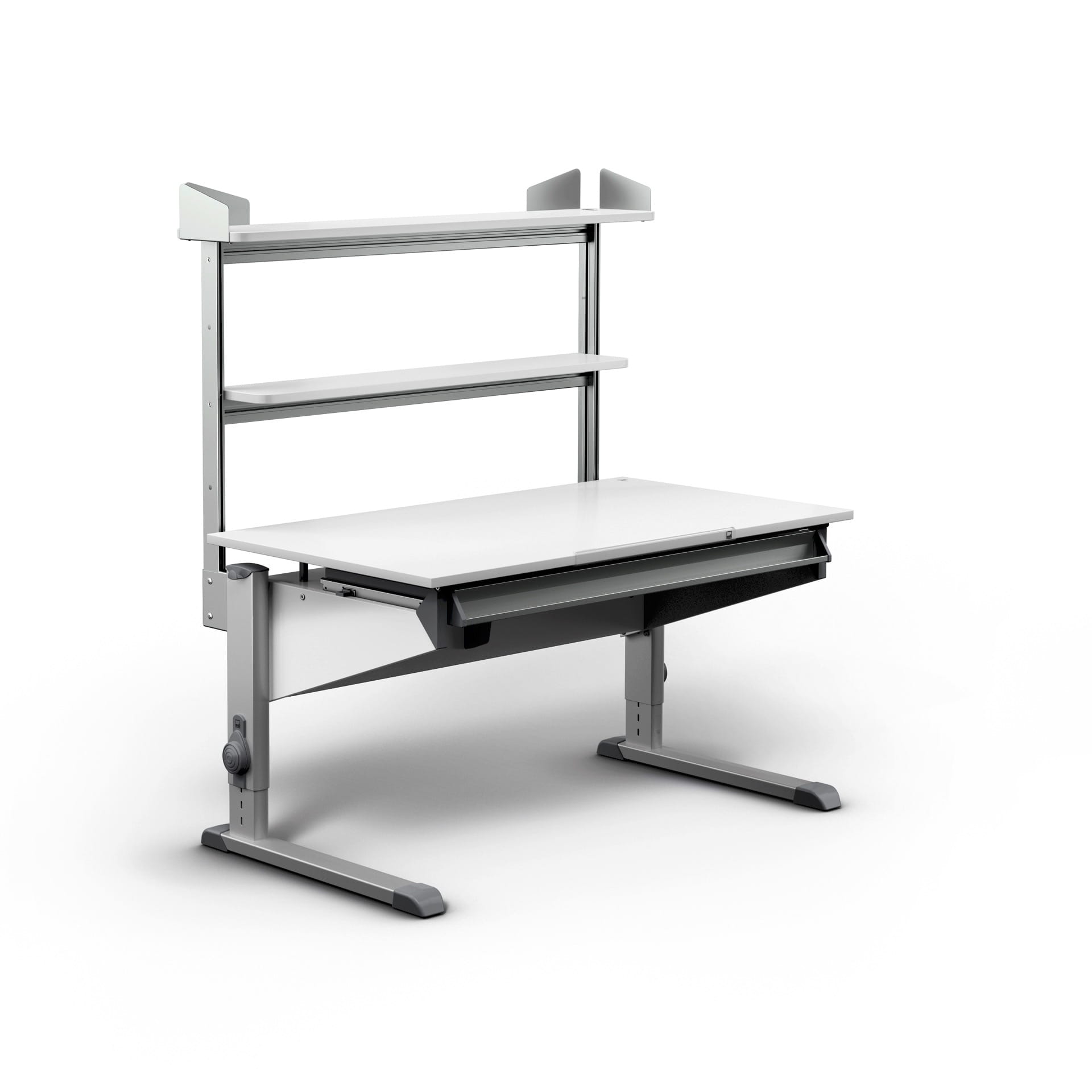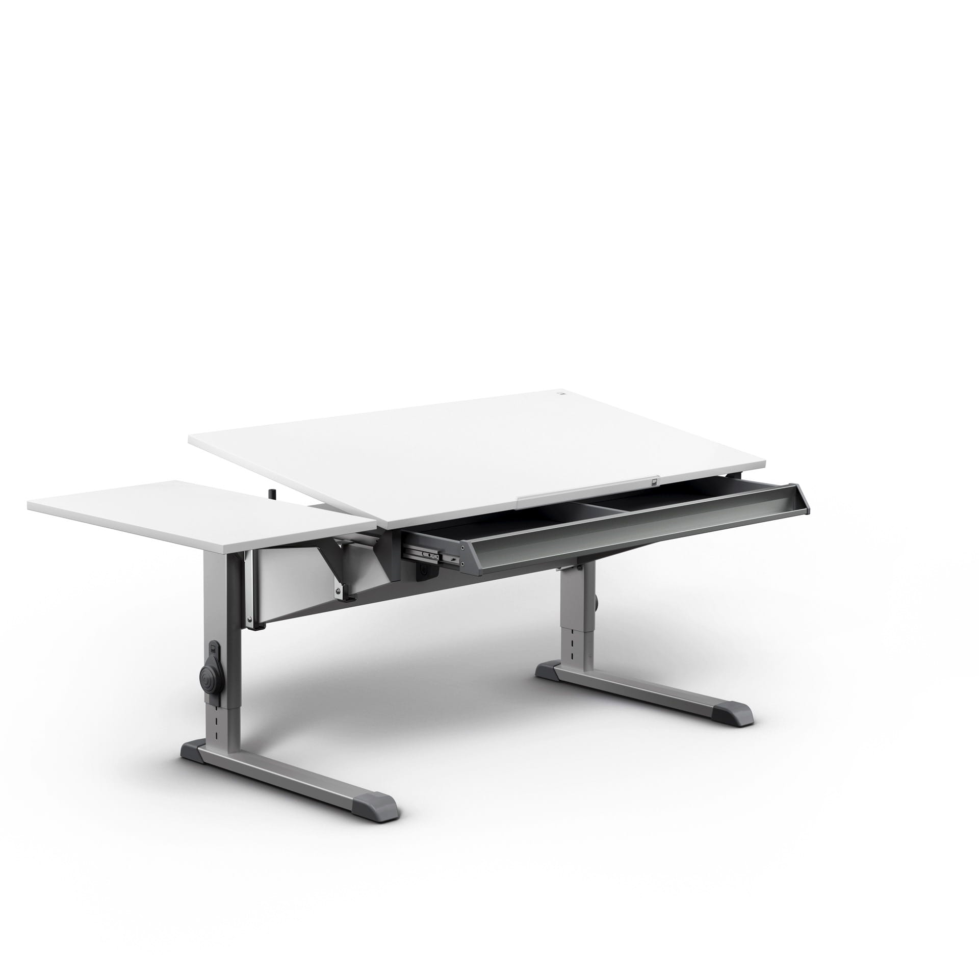 Biurko kompaktowe, czyli mniejszej szerokości 85.5cm, które jest długodystansowcem, pokonuje całą trasę od 1 klasy do matury. Od 53cm do 82cm wysokości blatu.