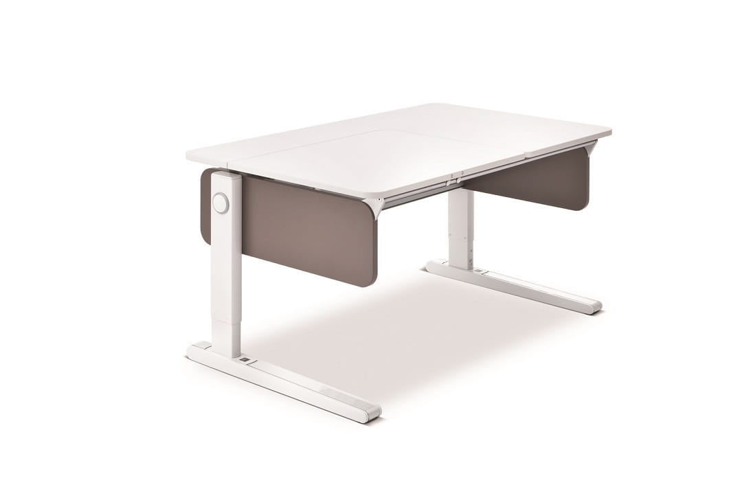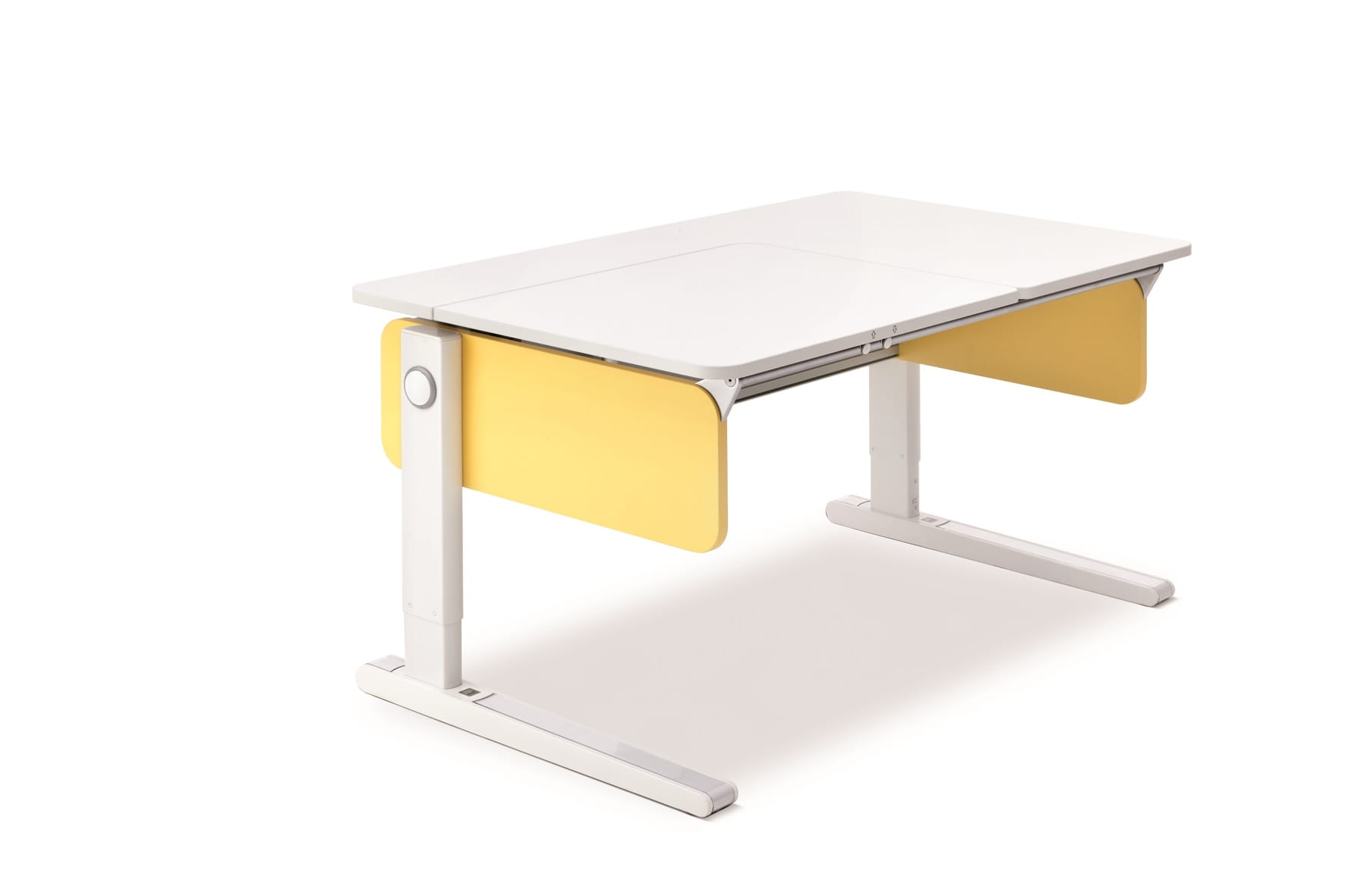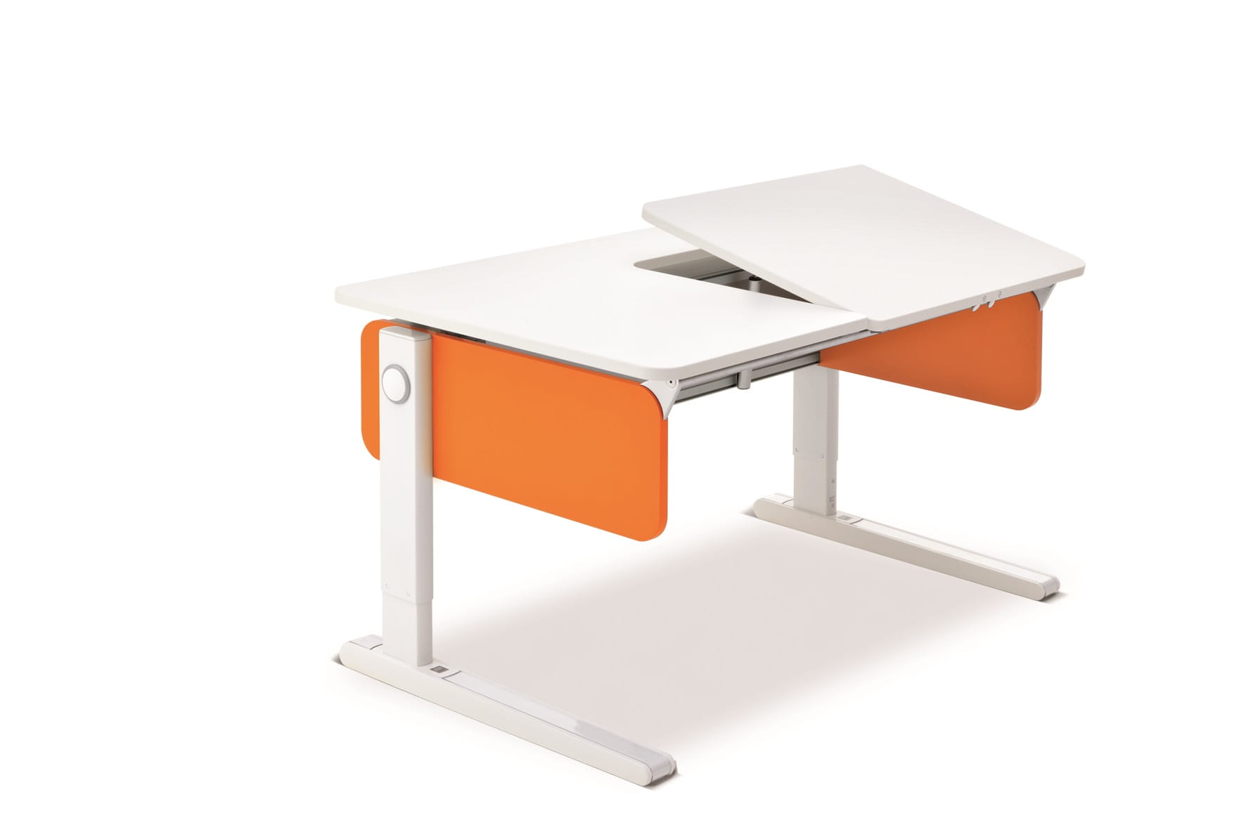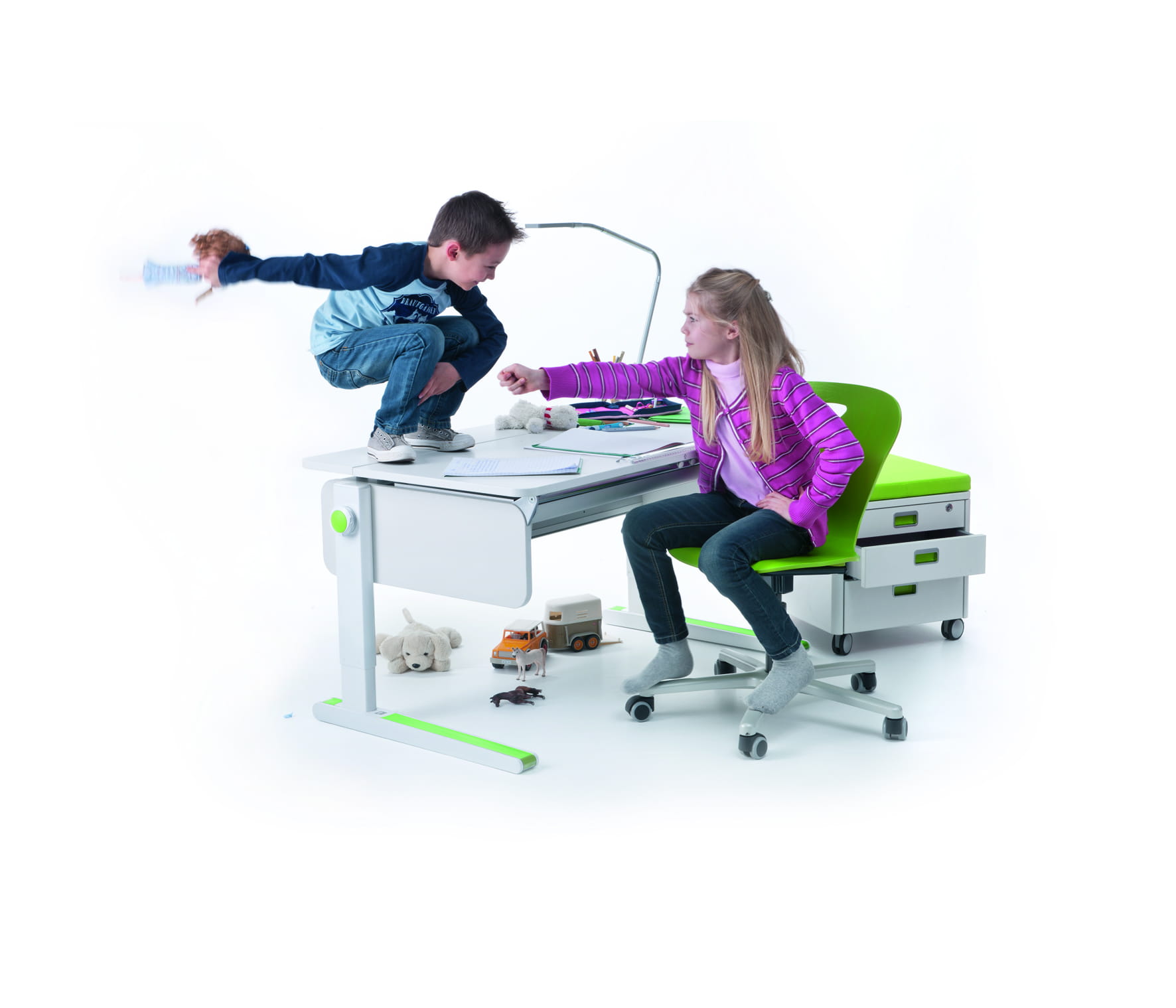 Biurko Champion right up rosnące wraz z dzieckiem łączy nowoczesny design połączony z wieloma przydatnymi funkcjami. Kolorystyka cała w białym kolorze plus dodatkowe elementy w 8 kolorach, które można wymieniać w każdej chwili. Wersja right up jest wersją biurka dla osoby leworęcznej – uchylna część blatu biurka po prawej stronie.