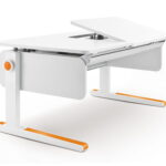 Biurko Champion right up rosnące wraz z dzieckiem łączy nowoczesny design połączony z wieloma przydatnymi funkcjami. Kolorystyka cała w białym kolorze plus dodatkowe elementy w 8 kolorach, które można wymieniać w każdej chwili. Wersja right up jest wersją biurka dla osoby leworęcznej – uchylna część blatu biurka po prawej stronie.