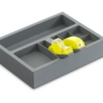 Praktyczny zestaw Orga Set od Molla jest właściwym elementem służącym utrzymaniu czystego biurka. Ze względu na dużą liczbę małych przedziałów artykuły do pisania i rysowania w szufladzie są zawsze uporządkowane lub można je również łatwo postawić na biurku nawet z pochylonym blatem roboczym – organizer posiada cztery silikonowe antypoślizgowe nóżki. Zintegrowany rozkładany wałek z przezroczystą taśmą klejącą są temperówka są szczególnie praktyczne i bardzo podobają się dzieciom.